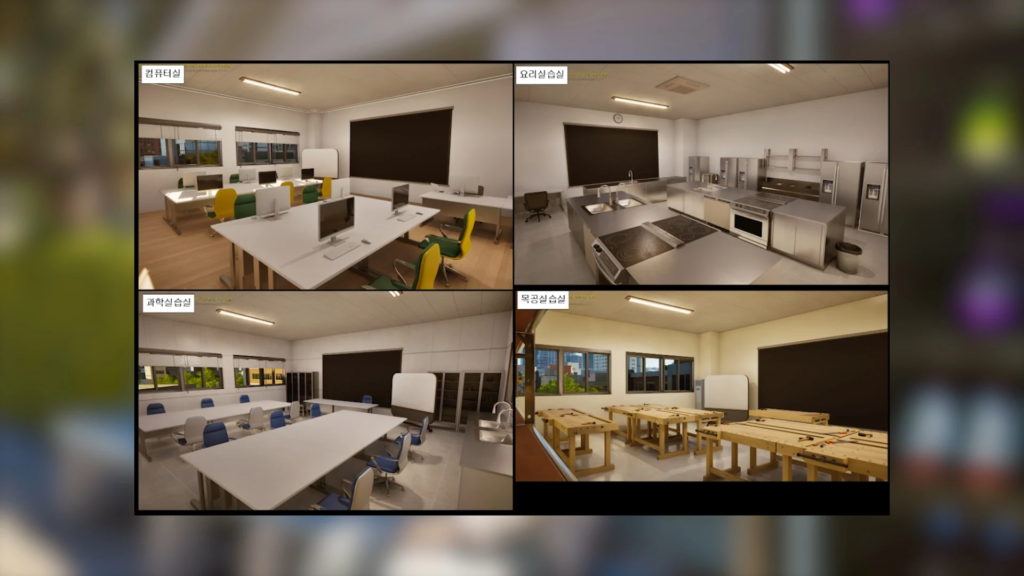 InZOI High School güncellemesi, sadece kıyafet seçenekleriyle sınırlı kalmayacak. Paylaşılan görsellerde görüldüğü üzere, okul binası tam donanımlı bir lise kampüsünü simüle edecek şekilde tasarlanmış: