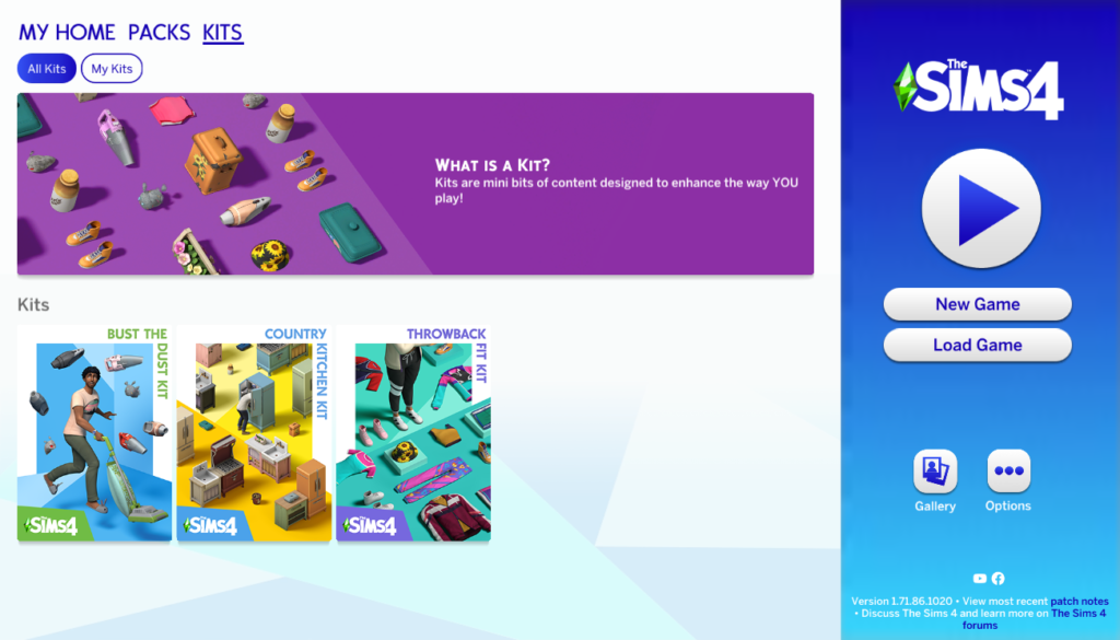 Aşağıda her The Sims 4 Kit’ten ne bekleyebileceğinize göz atabilirsiniz, Kitler Menüsünün tamamı şöyle görünecek: